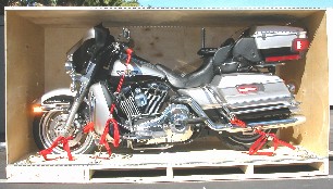 FREE ACCESSORIES: YOU GET TO KEEP ALL THE ACCESSORIES WE USE TO SHIP YOUR MOTORCYCLE. THAT INCLUDES THE SPECIAL TIES (4), TIE-DOWNS (4), THE COVER AND THE SKID. THE STRAPS AND COVER ALNE ARE VALUED AT OVER ˆ40. YOU WON'T GET EXTRAS LIKE THIS ANYWHERE. |